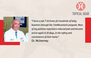 "I have script T:25 Knees for hundreds of baby boomers through the TeleMovement program. Most of my patients experience reduced pain and become active again in 30 days, in the safety and convenience of their home."